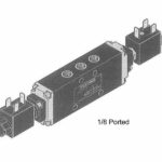 Three position valves can be used to position cylinder piston rods or switch air supplies to alternate devices. In line spool valves are available in 2 versions; with all ports open or all ports closed in the center (off) position. Springs return the valve to the center position when the coil power is switched off. Valves can be individually mounted using through body holes or assembled on manifolds.